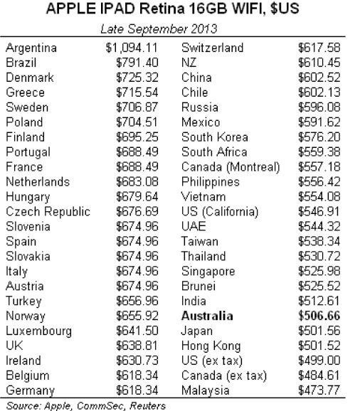 CommSec Analyst firm decided to find out what are the differences in the price of Apple’s tablet in 46 countries (almost) all the continents of the world. It