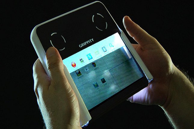 Developers Grippity decided to make use of the fingers, which usually only hold the equipment. In this tablet are needed for example, when writing . The screen is two-sided, so we can enjoy not only your thumbs or index finger or middle.